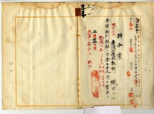 三一 台中庁長枝徳二ノ内申ニ依リ台湾小学校教諭織田ツナハ疾病ニ罹リ職ニ堪ヘサル旨ヲ以テ退職ヲ願ヒ出タル為メ事務格別勉励ニ付キ金三三円ヲ賞与ス
