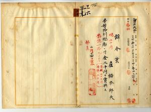 三六 台湾総督府民政部蕃務本署長代理警視高塚彊ノ内申ニ依リ蕃務本署勤務雇栖本邦夫ハ家事都合ニ依リ退職ヲ願ヒ出タル為メ解雇シ事務格別勉励ニ付キ金二〇円ヲ賞与ス