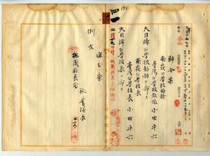 四一 台南庁長松木茂俊ノ稟申ニ依リ南響公学校勤務台湾公学校教諭小田平六ニ大目降公学校長並ニ大目降公学校勤務ヲ命ス