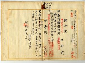 六七 台湾総督府民政部財務局長中川友次郎ノ内申ニ依リ阿緱庁雇伊丹武ヲ台湾総督府属ニ任シ民政部財務局勤務ヲ命ス