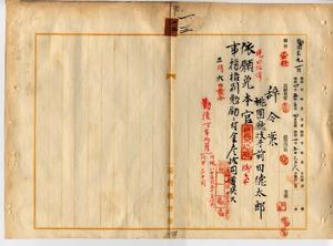 一三 桃園庁技手前田徳太郎ハ脚気ニ罹リ職ニ堪ヘサル旨ヲ以テ辞職願ニ依リ事務格別勉励ニ付キ一時金ヲ賞与シ本官ヲ免ス