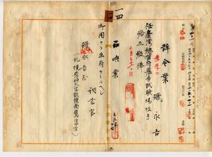 一四 台湾総督府農事試験場長高田元治郎ノ内申ニ依リ東北帝国大学農学科卒業農学士磯永吉ヲ台湾総督府農事試験場技手ニ任ス