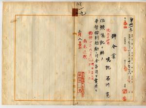 一九 台湾総督府民政部殖産局糖業試験場勤務嘱託ノ石川寛ハ疾病職ニ堪ヘサル旨ヲ以テ辞職願ニ依リ事務格別勉励ニ付キ一時金ヲ賞与シ嘱託ヲ解ク