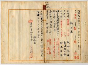 二二 台北郵便局長伊藤金弥ノ内申ニ依リ台北郵便局勤務ノ通信助手大本文吉・同亀田利三郎・通信事務員兼通信助手鈴木正治ヲ台湾総督府通信手ニ任シ台北郵便局勤務ヲ命ス