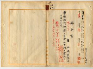 二八 台湾総督府民政部財務局長中川友次郎ノ内申ニ依リ民政部財務局雇会計課勤務ノ山崎東洋士ハ御用済ヲ以テ事務格別勉励ニ付キ一時金ヲ賞与シ雇ヲ免ス