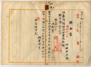 二九 台湾総督府中学校長事務取扱広江万次郎ノ内申ニ依リ台湾総督府中学校嘱託ノ仁井田平馬ヲ台湾総督府中学校教諭ニ任ス尚台湾総督府中学校嘱託渡辺三郎ハ詮議ナラス