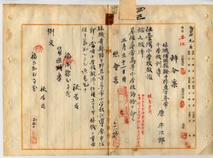 四三 台北庁長井村大吉ノ内申ニ依リ休職福岡県鞍手郡直方尋常小学校訓導原平次郎ヲ台湾小学校教諭ニ任シ基隆尋常高等小学校勤務ヲ命ス