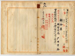 六八 台湾総督府民政部通信局長心得角源泉ノ内申ニ依リ属戸田重春危篤ニ陥リ事務格別勉励ニ付キ一時金ヲ賞与ス
