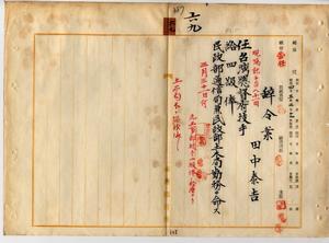 六九 台湾総督府民政部通信局長心得角源泉ノ内申ニ依リ属田中泰吉ヲ台湾総督府技手ニ任シ民政部通信局兼民政部土木局勤務ヲ命ス
