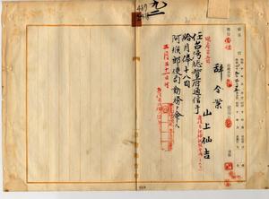 九二 阿緱郵便局長樋口憲ノ内申ニ依リ雇山上仙吉ヲ台湾総督府通信手ニ任シ阿緱郵便局勤務ヲ命ス