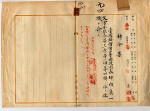 九四 台湾総督府民政部通信局長心得角源泉ノ内申ニ依リ大目降郵便局長勤務台湾総督府三等郵便局長坪内良一ニ文官分限令第一一条第一項第四号ニ依リ休職ヲ命ス