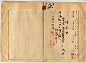 九五 台北庁長井村大吉ノ内申ニ依リ台北庁警察医小林準一ノ月俸ヲ増額ス