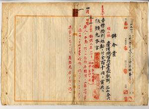一 台湾総督府中学校教諭三山春次ハ疾病ニ罹職ニ堪ヘサル旨ヲ以テ辞職願ニ依リ事務格別勉励ニ付キ一時金ヲ賞与シ(三月三一日付)本官ヲ免ス(四月一日付)