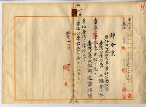 一〇 嘉義庁長津田毅一ノ内申ニ依リ店仔口公学校長兼番社公学校長台湾公学校長三瀬金十郎ノ兼務ヲ免シ、台湾公学校教諭近藤信陽ヲ台湾公学校長ニ兼任シ番社公学校長ヲ命ス