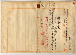 一三 台湾総督府民政部土木局長心得高橋辰次郎ノ内申ニ依リ元打狗水道工事ニ関スル医務嘱託室谷喬三ニ在職中事務格別勉励ニ付キ一時金ヲ賞与シ御用済ニ付キ嘱託ヲ解ク