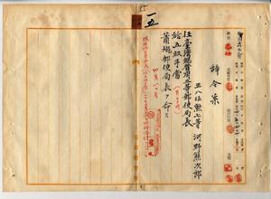 一五 台湾総督府民政部通信局長心得角源泉ノ内申ニ依リ河野熊次郎ヲ台湾総督府三等郵便局長ニ任シ蕭暇郵便局長ヲ命ス