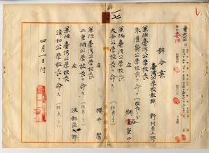 一七 台北庁長井村大吉ノ内申ニ依リ元大龍斤公学校朱鮎崙分校勤務台湾公学校教諭野村兼五郎ヲ台湾公学校長ニ兼任シ朱鮎崙公学校長ヲ命シ、元大龍斤公学校大安分校勤務台湾公学校教諭網谷重二ヲ台湾公学校長ニ兼任シ大安公学校長ヲ命シ、元興直公学校頭前分校勤務台湾公学校教諭桜井馨ヲ台湾公学校長ニ兼任シ二重埔公学校長ヲ命シ、元枋橋公学校枋椙分校勤務台湾公学校教諭波部荘次郎ヲ台湾公学校長ニ兼任シ守和公学校長ヲ命ス