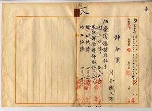 一八 台湾総督府民政部学務部長心得隈本繁吉ノ内申ニ依リ元大阪アルカリ株式会社技師河合鉄太郎ヲ台湾総督府技手ニ任シ(三月三一日付)民政部学務部勤務ヲ命ス(四月五日付)