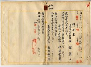 二二 嘉義庁長津田毅一ノ内申ニ依リ嘉義尋常高等小学校勤務台湾小学校教諭館熊吉ヲ台湾小学校長ニ兼任シ五間鮎尋常高等小学校長ヲ命シ、斗六尋常高等小学校勤務台湾小学校教諭秋場倉之助ヲ台湾小学校長ニ兼任シ北港尋常高等小学校長ヲ命シ、斗六尋常高等小学校勤務台湾小学校教諭稲留嘉次郎ヲ台湾小学校長ニ兼任シ林内尋常高等小学校長ヲ命ス