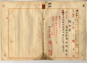四三 嘉義庁長津田毅一ノ内申ニ依リ辞職ヲ出願シタル嘉義庁属玉岡巌男ニ事務格別勉励ニ付キ一時金ヲ賞与ス
