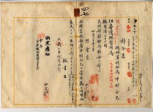 四七 台湾総督府民政部財務局長中川友次郎ノ内申ニ依リ下京税務署勤務税務署税務属中村正巳ヲ台湾総督府属ニ任シ民政部財務局勤務ヲ命ス