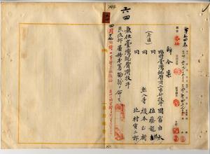 六四 台湾総督府民政部蕃務本署長大津麟平ノ内申ニ依リ臨時台湾総督府工事部技手ノ国富由太・佐藤龍橘・榎本正樹・北村寅三郎ヲ台湾総督府技手ニ兼任シ民政部蕃務本署勤務ヲ命ス
