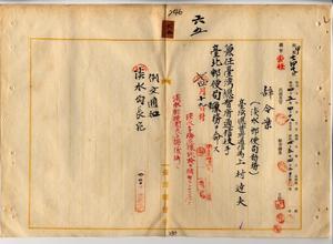 六五 台北郵便局長伊藤金弥ノ内申ニ依リ淡水郵便局勤務台湾総督府通信属上村達夫ニ台湾総督府通信技手ヲ兼任シ台北郵便局勤務ヲ命ス