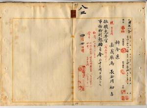 八三 嘉義庁属長谷川初吉ハ疾病ニ罹リ職ニ堪ヘサル旨ヲ以テ辞職願ニ依リ本官ヲ免シ事務格別勉励ニ付キ一時金ヲ賞与ス