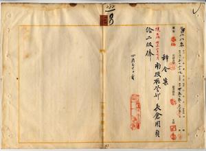 一〇〇 台湾総督府民政部警察本署長亀山理平太ノ内申ニ依リ蕃人ト衝突シテ負傷シ危篤トナリタル南投庁警部長倉用貞ヲ昇級ス