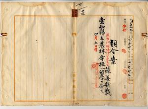 一〇三 台湾総督府農事試験場長高田元治郎ノ稟申ニ依リ台湾総督府農事試験場講習卒業生范姜新裁ニ愛知県立農林学校ヘ留学ヲ命ス