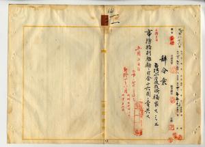 一一 台北庁長井村大吉ノ内申ニ依リ台湾小学校教諭福家スミエニ事務格別勉励ニ付キ一時金ヲ賞与ス