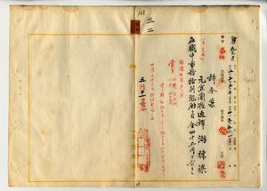 三二 宜蘭庁長小松吉久ノ内申ニ依リ麻剌里亜ニ罹リ辞職シタ元宜蘭庁通訳游棟梁在職中事務格別勉励ニ付キ一時金ヲ賞与ス