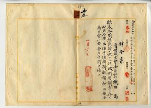五五 台湾総督府旧慣調査会長内田嘉吉ノ内申ニ依リ臨時台湾旧慣調査会委員織田万ニ欧米各国植民地ニ於ケル行政制度調査ヲ命シ一時金ヲ給ス