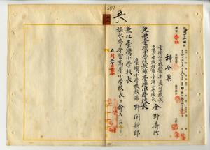 五八 嘉義庁長津田毅一ノ内申ニ依リ台湾公学校教諭兼台湾公学校長台湾総督府小学校教諭兼台湾小学校長兼塩水港尋常高等小学校長金野寿作ノ台湾小学校教諭台湾小学校長兼任ヲ免シ、台湾小学校教諭野間新郎ニ台湾小学校長ヲ兼任シ塩水港尋常高等小学校長ヲ命ス