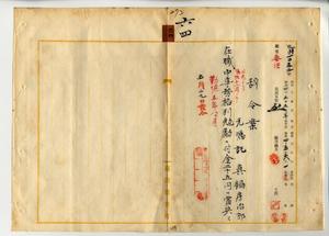 六四 台湾総督府民政部通信局長心得角源泉ノ内申ニ依リ御用済解嘱ノ元嘱託真鍋房治郎ハ在職中事務格別勉励ニ付キ一時金ヲ賞与ス