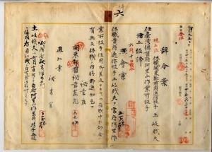 六 阿里山作業所長事務取扱新元鹿之助ノ内申ニ依リ休職関東都督府通信技手土岐賤夫ヲ台湾総督府阿里山作業所技手ニ任ス