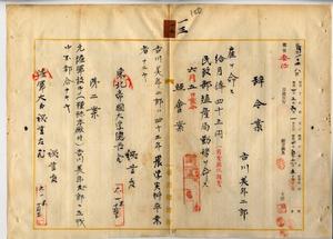 一三 台湾総督府民政部殖産局長高田元治郎ノ具申ニ依リ元陸軍技手吉川美年二郎ニ台湾総督府雇ヲ命シ民政部殖産局勤務ヲ命ス