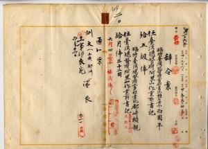 二〇 台湾総督府阿里山作業所長事務取扱新元鹿之助ノ内申ニ依リ臨時台湾総督府工事部書記ノ小西国平ト都崎頼親ヲ台湾総督府阿里山作業所書記ニ任ス