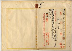 二一 台湾総督府阿里山作業所長事務取扱新元鹿之助ノ内申ニ依リ台湾総督府阿里山作業所事務嘱託渡辺薫ヲ台湾総督府阿里山作業所書記ニ任ス