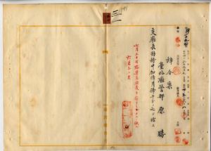 三一 台北庁長井村大吉ノ内申ニ依リ台北庁警部原勝瑞芳支庁長ヲ命セラレタルニ付キ同支庁長勤務中加俸トシテ月俸ノ十分ノ七ヲ給ス三一 阿緱庁属中谷尚三ハ脚気及ヒマラリアニ罹リ職ニ堪ヘサル旨ヲ以テ辞職願ニ依リ本官ヲ免シ事務格別勉励ニ付キ一時金ヲ賞与ス