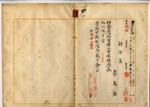 四〇 台湾総督府民政部通信局長心得角源泉ノ内申ニ依リ米穀並ニ薬種反物卸商李万居ヲ台湾総督府三等郵便局長ニ任シ台北中街郵便局長ヲ命ス