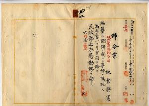 四二 台湾総督府民政部土木局長心得高橋辰次郎ノ内申ニ依リ台湾総督府作業所嘱託板倉勝憲ニ課嘩史編纂及土木行政制度ニ関スル翻訳事務ヲ嘱託シ民政部土木局勤務ヲ命ス