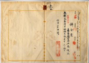 六二 嘉義庁長津田毅一ノ内申ニ依リ嘉義庁警部石高俊三ニ打猫支庁長ヲ命セラレタルニ付キ同支庁長勤務中加俸トシテ月俸ノ十分ノ七ヲ給ス