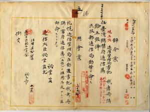 五 台湾総督府民政部通信局長心得角源泉ノ内申ニ依リ札幌逓信管理局在勤逓信省逓信管理局書記我妻丹弥ヲ台湾総督府通信属ニ任シ民政部通信局勤務ヲ命ス
