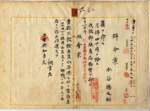 六 台湾総督府民政部殖産局長高田元治郎ノ具申ニ依リ三重県米穀検査員水谷徳之助ニ台湾総督府雇ヲ命シ民政部殖産局勤務ヲ命ス