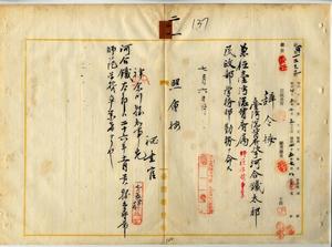二一 台湾総督府民政部学務部長心得隈本繁吉ノ内申ニ依リ台湾総督府技手河合鉄太郎ヲ台湾総督府属ニ兼任シ民政部学務部勤務ヲ命ス