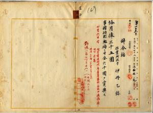 三二 台湾総督府作業所長賀来佐賀太郎ノ内申ニ依リ病気危篤ノ台湾総督府作業所技手伊丹乙弥ニ増俸ノ上事務格別勉励ニ付キ一時金ヲ賞与ス