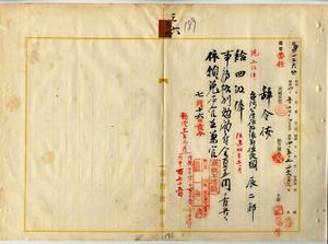 三六 双渓口公学校長台湾公学校教諭兼校長岡辰二郎ハ疾病ニ罹リ職ニ堪ヘサル旨ヲ以テ退職願ニ依リ昇級ノ上事務格別勉励ニ付キ一時金ヲ賞与シ本官並ニ兼官ヲ免ス