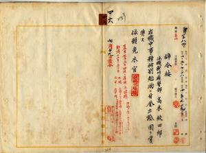 四六 休職新竹庁警部高木紋四郎ハ脚気ニ罹リ職ニ堪ヘサル旨ヲ以テ退官願ニ依リ事務格別勉励ニ付キ一時金ヲ賞与シ本官ヲ免ス