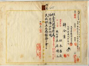 六三 台湾総督府民政部土木局長心得高橋辰次郎ノ内申ニ依リ民政部土木局庶務課勤務台湾総督府雇ノ鈴木盛蔵及ヒ表屋徳三ヲ台湾総督府属ニ任シ民政部土木局勤務ヲ命ス